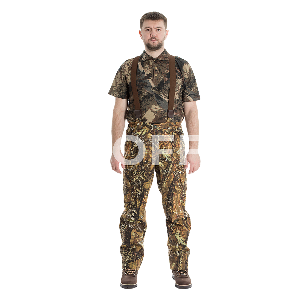 Изготовлен из специальной ткани с содержанием хлопка (35% пэ и 65% хб) с пич эффектом. Инновационные камуфлированные рисунки идеально маскируют охотника на любой местности в демисезонный период.