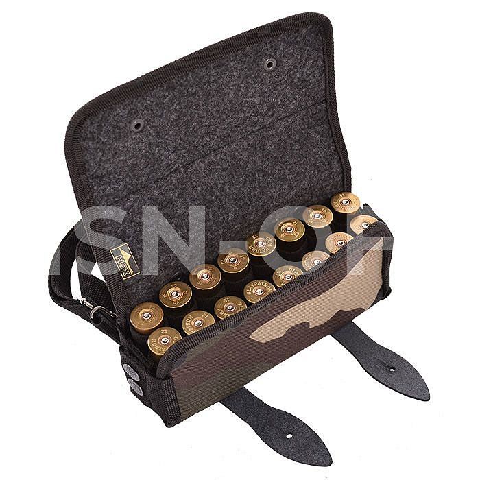 Изготовлена в традиционной форме из специальной ткани. Надежно держит 16 патронов в лузах.
