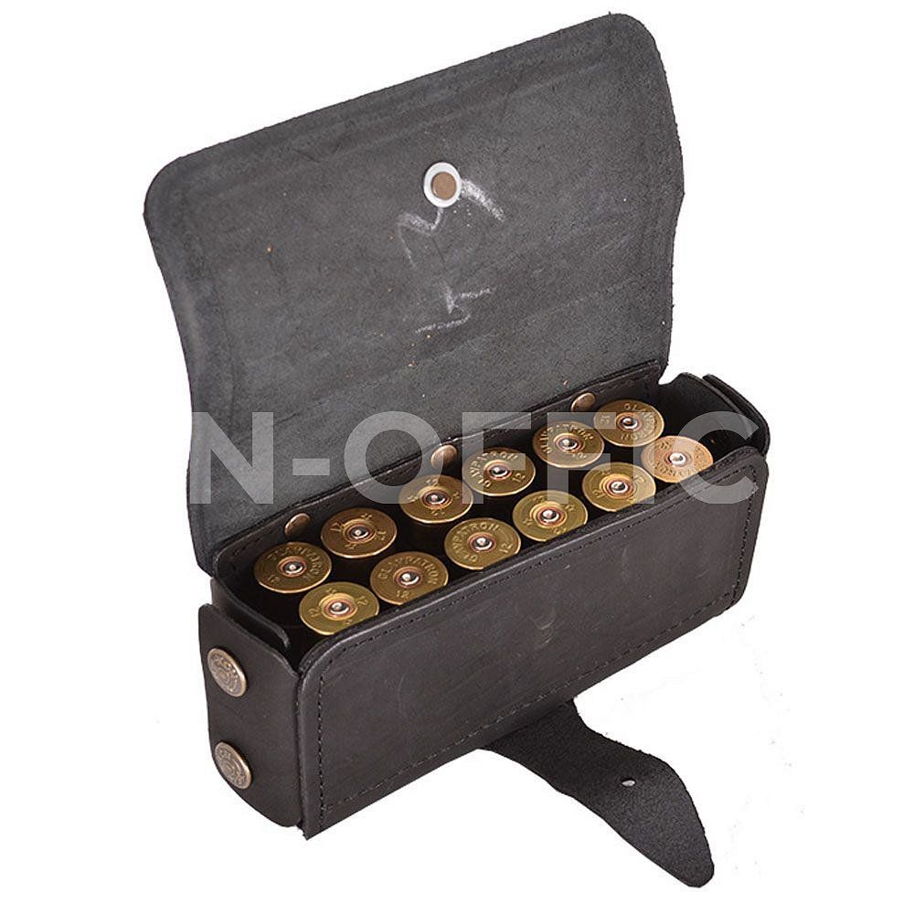 Изготовлена в традиционной форме из натуральной кожи. Патронташ надежно держит 12 патронов в лузах.